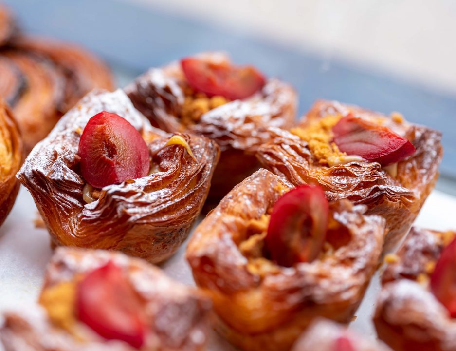 In 2018 while working at Little Bread Pedlar, Aaron met fellow pastry-chef and future girlfriend Jo Clarke. They connected over a shared love of food – and especially baked goods. Following stints at Pophams, and as Head Baker at The Daisy Green Collection, Jo joined Aaron in preparing to open the latest instalment in the Kossoffs series.